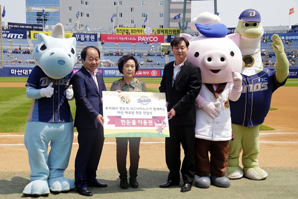 이날 NC다이노스와 한화 이글스의 경기에 앞서 시구는 한돈농가를 대표해 한돈자조금 하태식 의장이 맡았다. 이후 한돈자조금은 창원에 위치한 마산애육원에 어린이 영양지원을 위해 한돈을 전달했다.